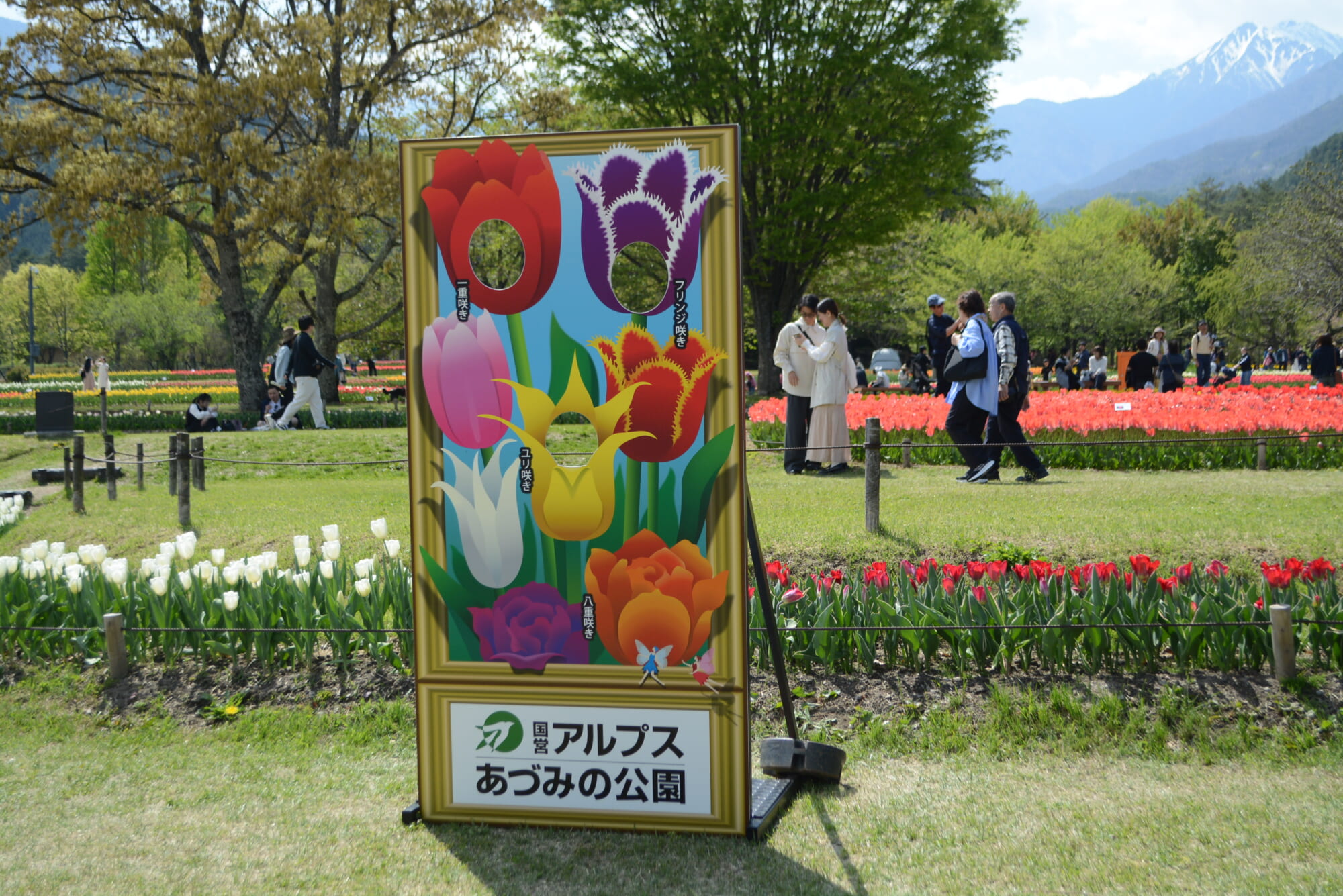 チューリップとナノハナの見ごろは5月上旬まで続く見込みです。三種の花と北アルプスの残雪が一度に揃う安曇野の春は、GW中の今が本番です。
