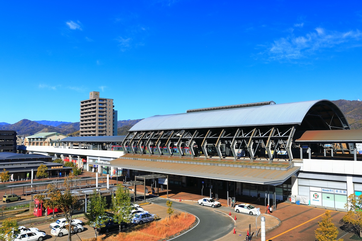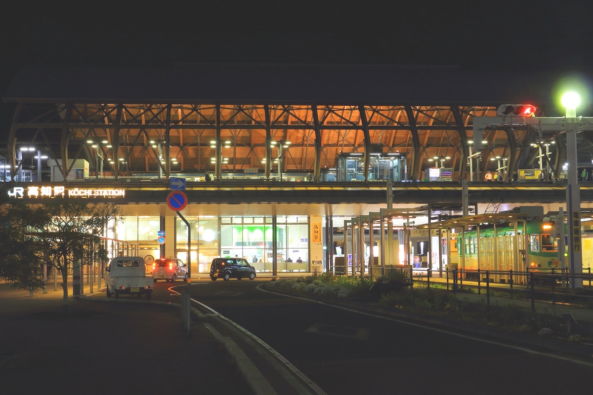 高知市の玄関口であるJR高知駅は、高知の旅の始まりにふさわしい、木の温もりを感じるモダンな駅舎が特徴です。建築家・内藤廣氏がデザインを手掛けた大きな屋根は、「くじらドーム」の愛称で親しまれています。