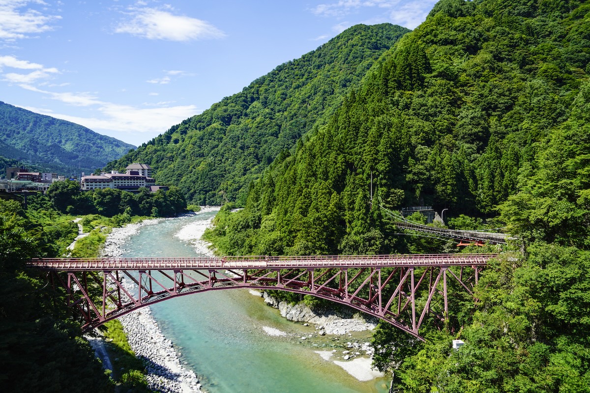 周辺の宿は、黒部川の断崖に沿うように建てられており、客室や露天風呂から峡谷のダイナミックな景観や、四季折々の自然美を間近に感じられるのが大きな魅力です。静かな環境の中で川のせせらぎを聞きながら、旅の疲れを芯から癒やすことができます。温かいおもてなしとともに、贅沢なひとときを過ごせる富山情緒溢れる場所です。