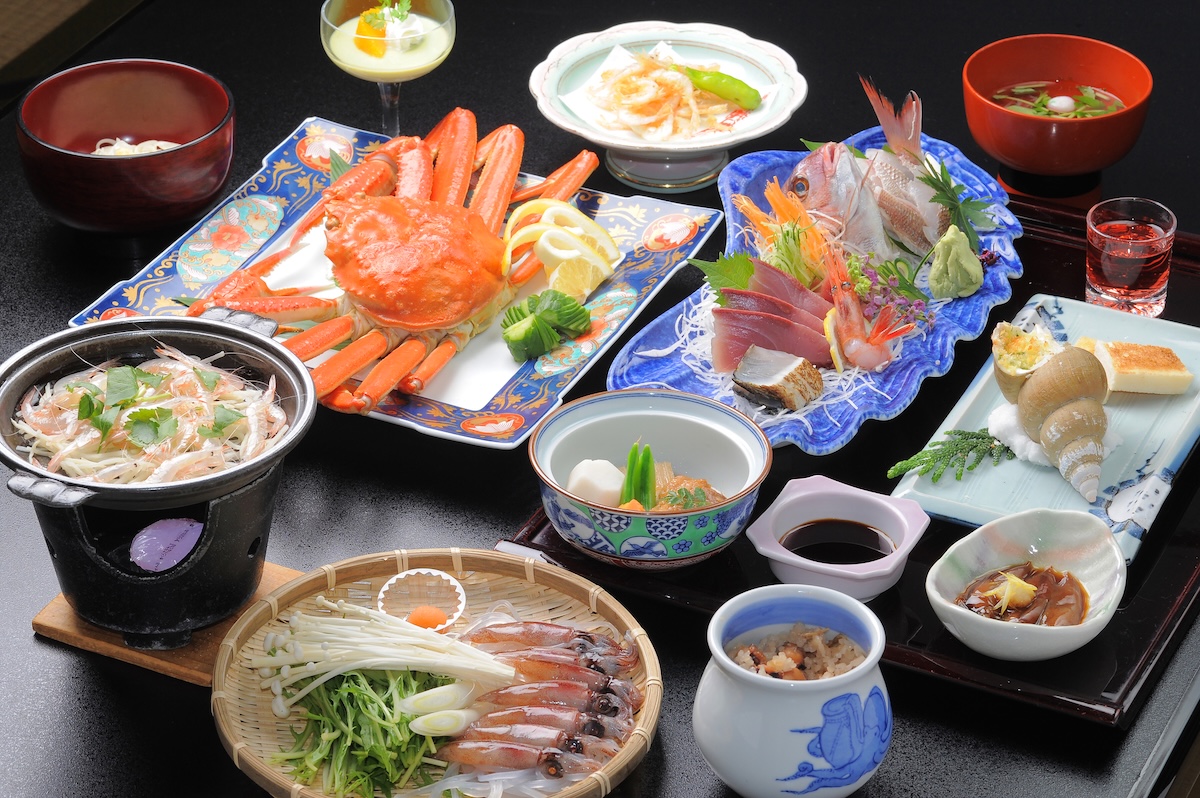 三朝温泉の宿で提供される夕食は、山陰の豊かな自然が育んだ旬の食材を贅沢に盛り込んだ会席料理が中心です。