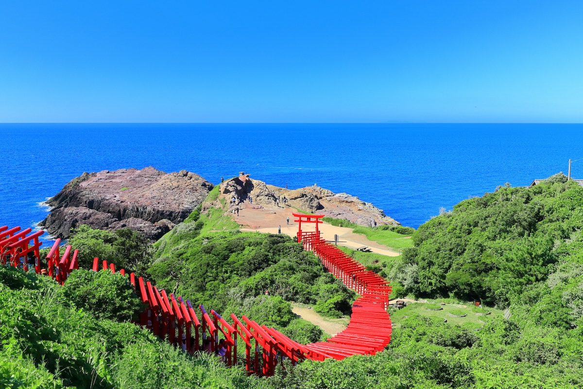 元乃隅神社は、山口県長門市にある神社です。1987年に地元の漁師が、夢で白狐からお告げを受けたことをきっかけに創建されました。日本海に面した断崖絶壁の上に123基の朱色の鳥居が並ぶ姿は圧巻で、「日本の最も美しい場所31選」にも選ばれています。