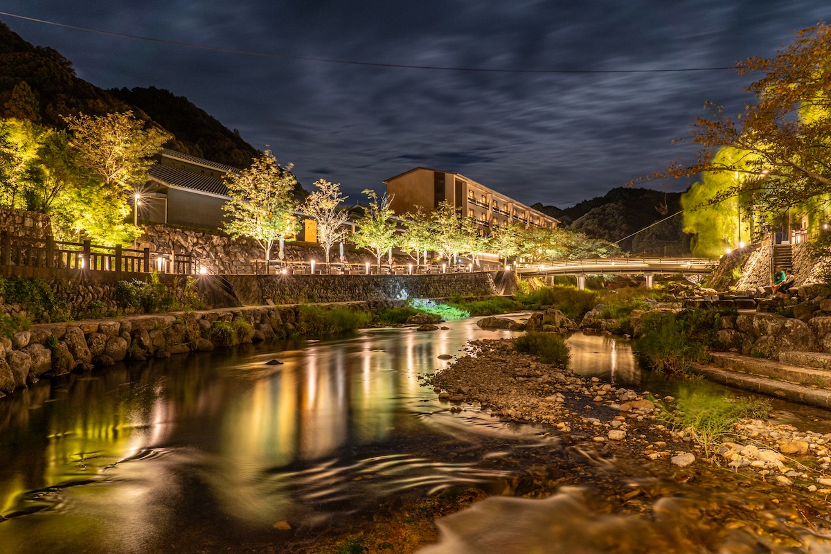 街を流れる音信川を中心に、2020(令和2)年にリニューアルされた立ち寄り湯の「恩湯(おんとう)」、川テラスや飛び石などがあり、街中を照らす幻想的なライトアップも行われます。宿にチェックインしたら、外に出て、散策する時間も確保したいところですが、温泉に浸かってお湯を楽しむ時間とのバランスに気をつけましょう。