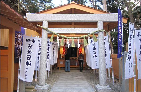 鳥羽市内には、女性の願いを叶えてくれるといわれる三柱の女神を祀る社があり、神明神社の境内にある「石神さん」はそのうちの一柱です。元々は、古くから地元の海女たちが豊漁と安全を祈願する神様として信仰されてきました。近年のパワースポットブームにより鳥羽三女神が注目されるようになり、全国各地から参拝客が訪れています。