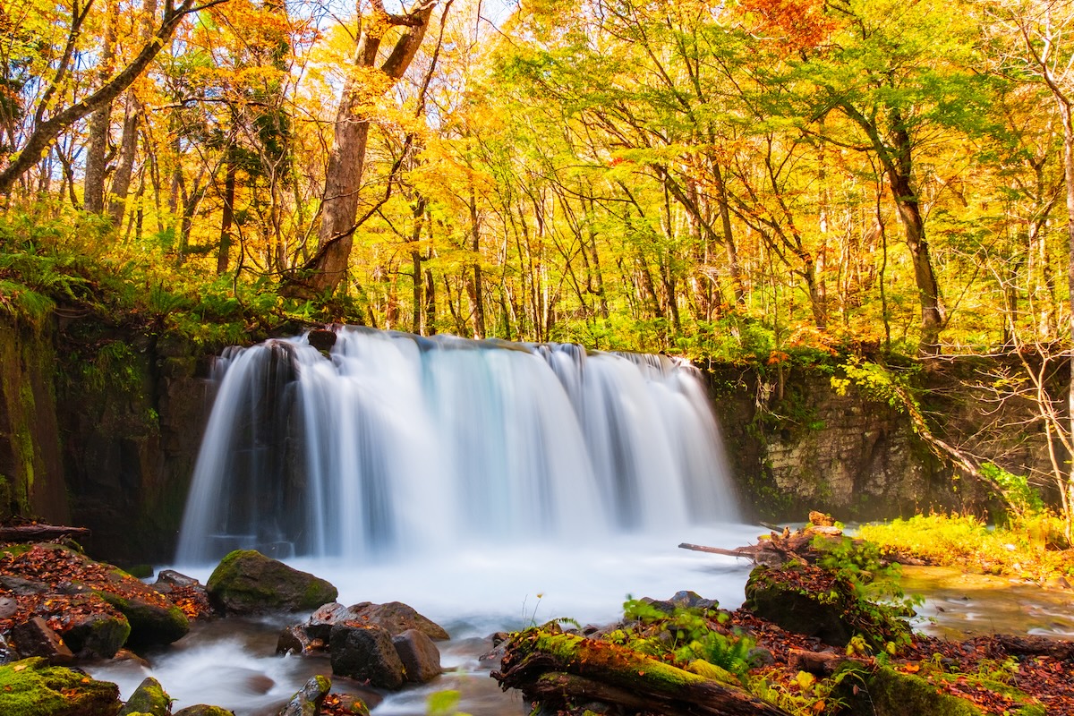 2日目の朝は、奥入瀬渓流のなかでも特に見どころが集中する石ヶ戸から子ノ口を目指します。「阿修羅の流れ」では岩に激しくぶつかる力強い水流を、高さ20メートルの「雲井の滝」や、本流にかかる随一の大滝「銚子大滝」では、降り注ぐ水飛沫と圧倒的な水量を間近に観察できます。