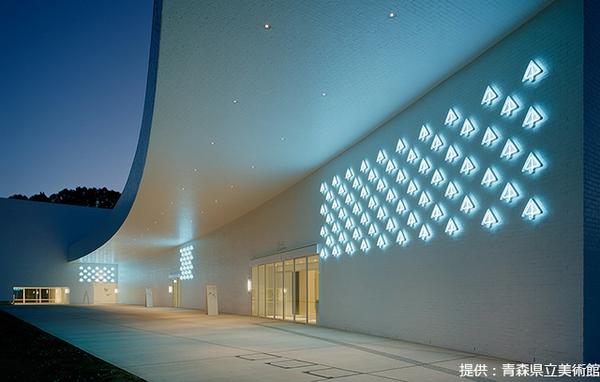 三内丸山遺跡に隣接する青森県立美術館は、発掘現場の「トレンチ(溝)」をイメージした、凹凸のある白い幾何学的な構造が特徴です。建物自体が縄文の記憶と現代のアートを繋ぐ装置として機能しており、土の壁と真っ白な壁が対比を成す、他に類を見ない建築美を誇ります。