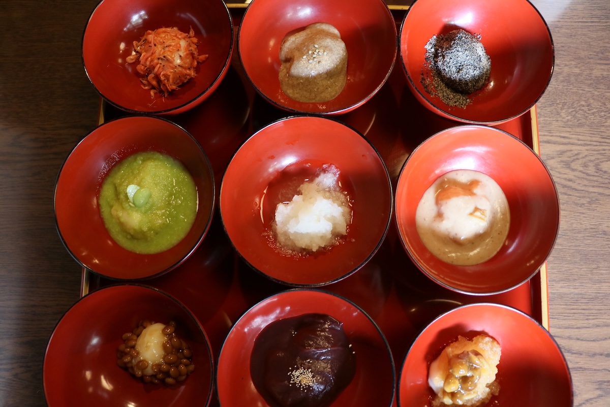 平泉町周辺の飲食店では、地域の歴史や文化を反映した独自の食事が提供されています。代表的なメニューは、一口サイズの餅を多彩な味付けで楽しむ「もち膳」です。冠婚葬祭の儀礼食として400年以上親しまれてきた文化があり、あんこや胡麻、ずんだ、くるみのほか、納豆や大根おろしなど、バリエーション豊かな餡で食されます。