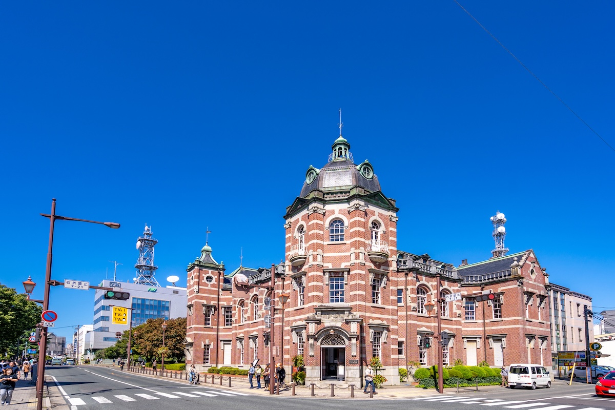 赤レンガに白い花崗岩を帯状に配した「辰野式」と呼ばれる外観デザインが特徴で、国の重要文化財に指定されています。