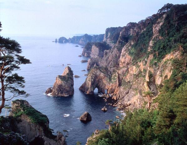 北山崎は、田野畑村にある高さ200mに及ぶ断崖絶壁が約8kmにわたって続く景勝地です。全国の観光資源評価の「自然資源・海岸の部」で最高ランクの特A級に格付けされた実績を持ちます。