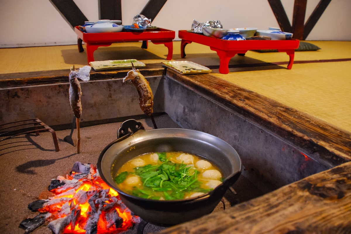 乳頭温泉郷の夕食は、地元の食材をふんだんに取り入れた素朴ながら滋味深い料理が中心です。名物として知られる「山の芋鍋」は、粘りの強い地元産の山芋を団子状にして、味噌仕立ての汁で煮込んだ郷土料理です。また、春には山菜、秋にはきのこなど、その時期に山で採れた新鮮な素材の天ぷらや和え物が並びます。