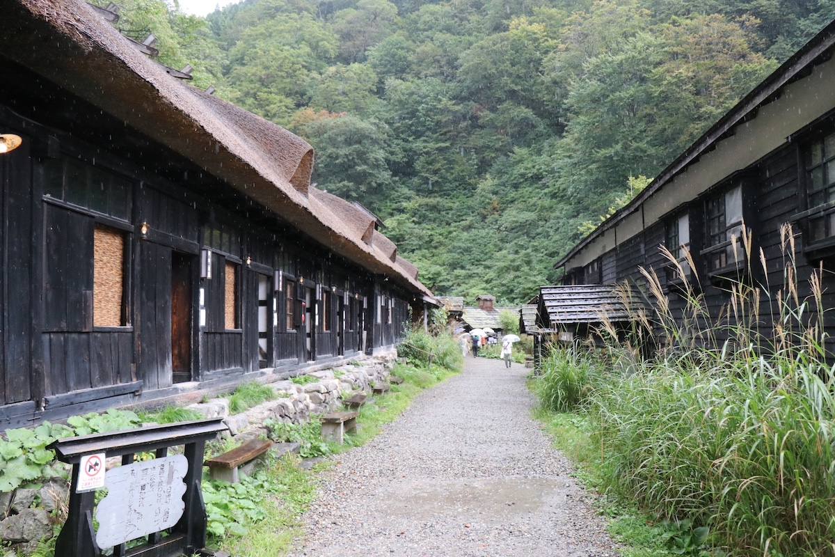 今もなお、茅葺き屋根の長屋「本陣」が残っており、当時の面影を強く留めています。泉質は白濁した乳白色が特徴で、広々とした露天風呂は足元湧出の露天風呂として知られています。