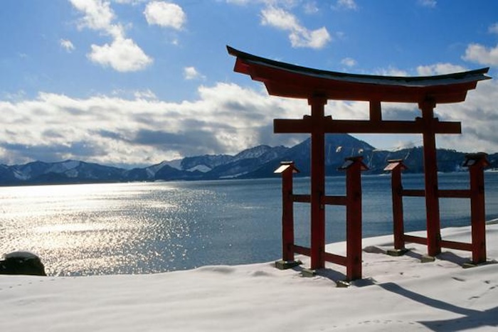 近くに位置する「御座石神社」は、かつて秋田藩主が腰を掛けて休息したとされる名所です。朱色の鳥居と湖水のコントラストが美しく、境内には1本の木から7種類の木が生えたとされる「七色木」などの伝承も残っています。透明度の高い湖面を眺めながら湖畔をゆっくり散策し、田沢湖の自然をより近くに感じましょう。