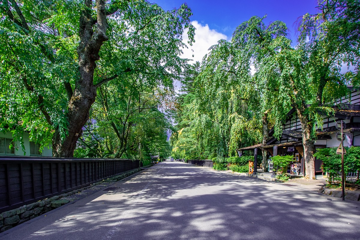 約11メートルと道幅が広く、歴史的な景観が維持されているため、歩行者にとっても散策しやすい環境が整っています。季節ごとに異なる表情を見せますが、特に新緑や紅葉の時期は多くの観光客が訪れます。