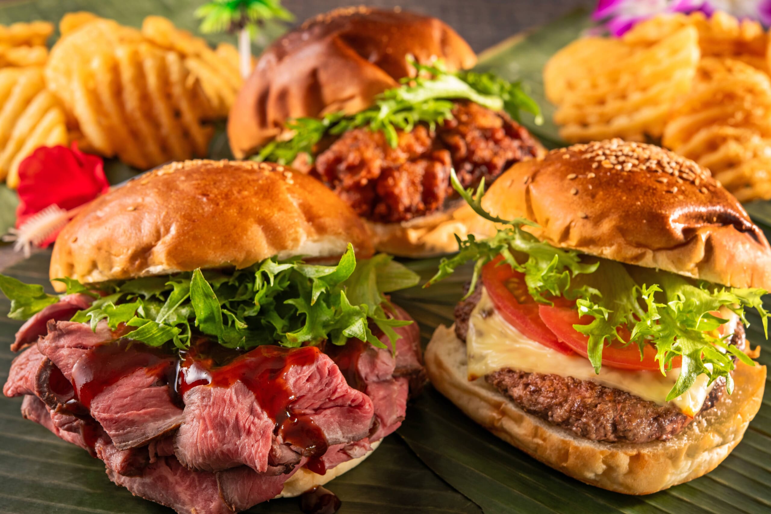 人気の『ロコモコ』のほか、『ガーリックシュリンプ』『ハワイアンズチキン』『目光炊き込みご飯』『ぺったら蕎麦』や各種バーガーといった、多種多様なメニューが訪れる人を魅了しています。