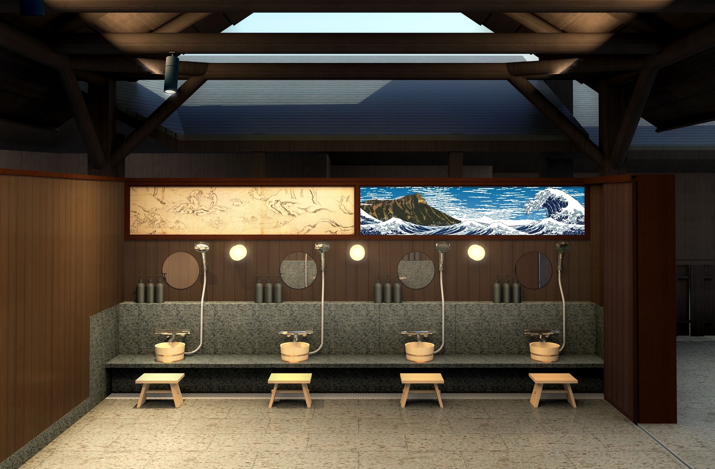 日本最大級の大露天風呂「江戸情話 与市」は “江戸×ハワイ” をテーマとした映える空間にリニューアル。江戸の庶民の間で人気だったとされる「七福神めぐり」が楽しめるほか、洗い場の新設、砂蒸し風呂や岩盤浴の導入が予定されています。