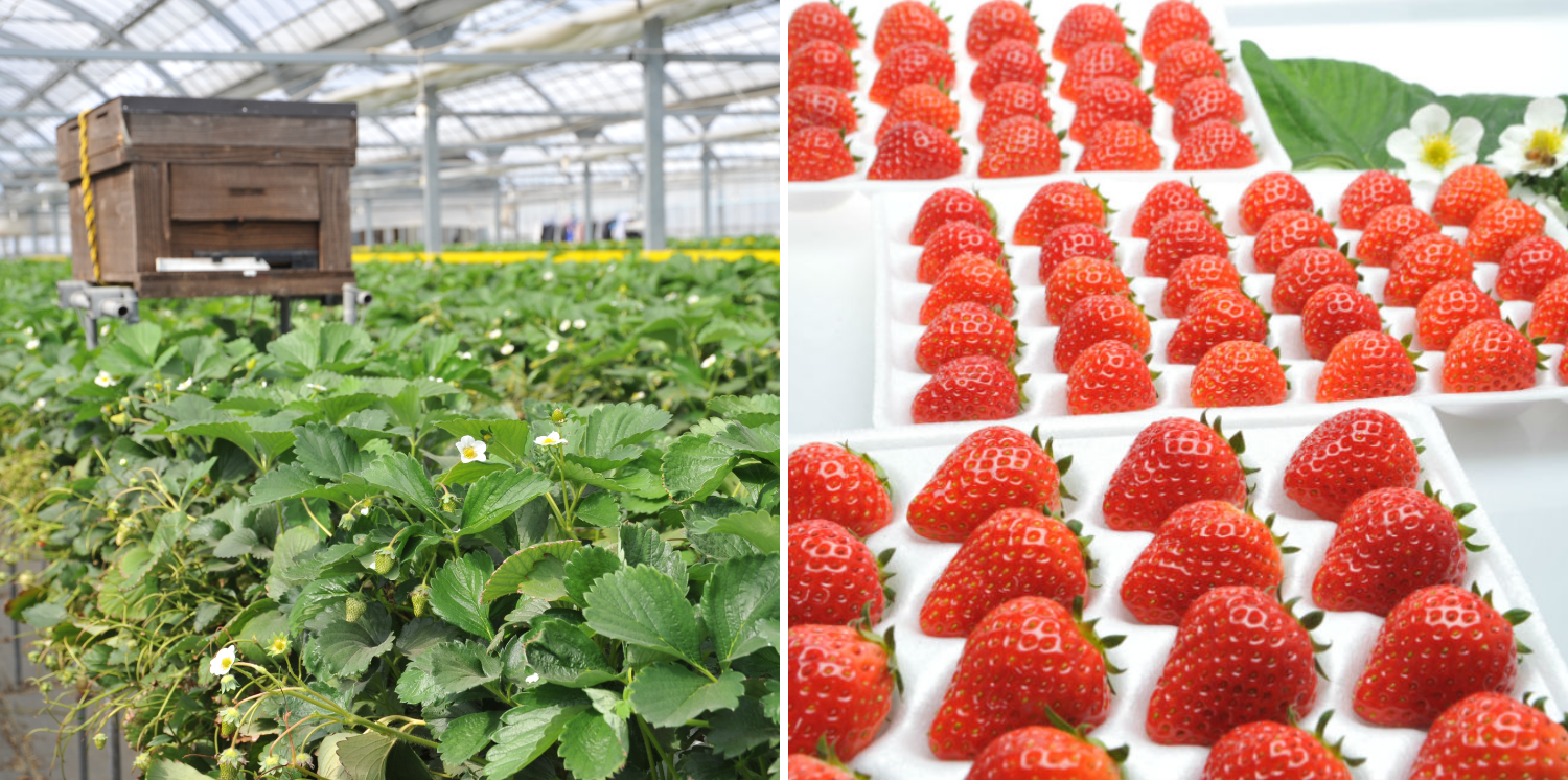 人の目と手による細かな観察と栽培技術、そしてITによる栽培環境の管理の両方を駆使して育てられたいちごは、大きく甘く、香りも抜群!