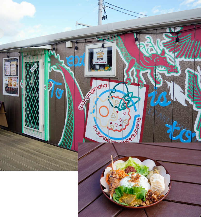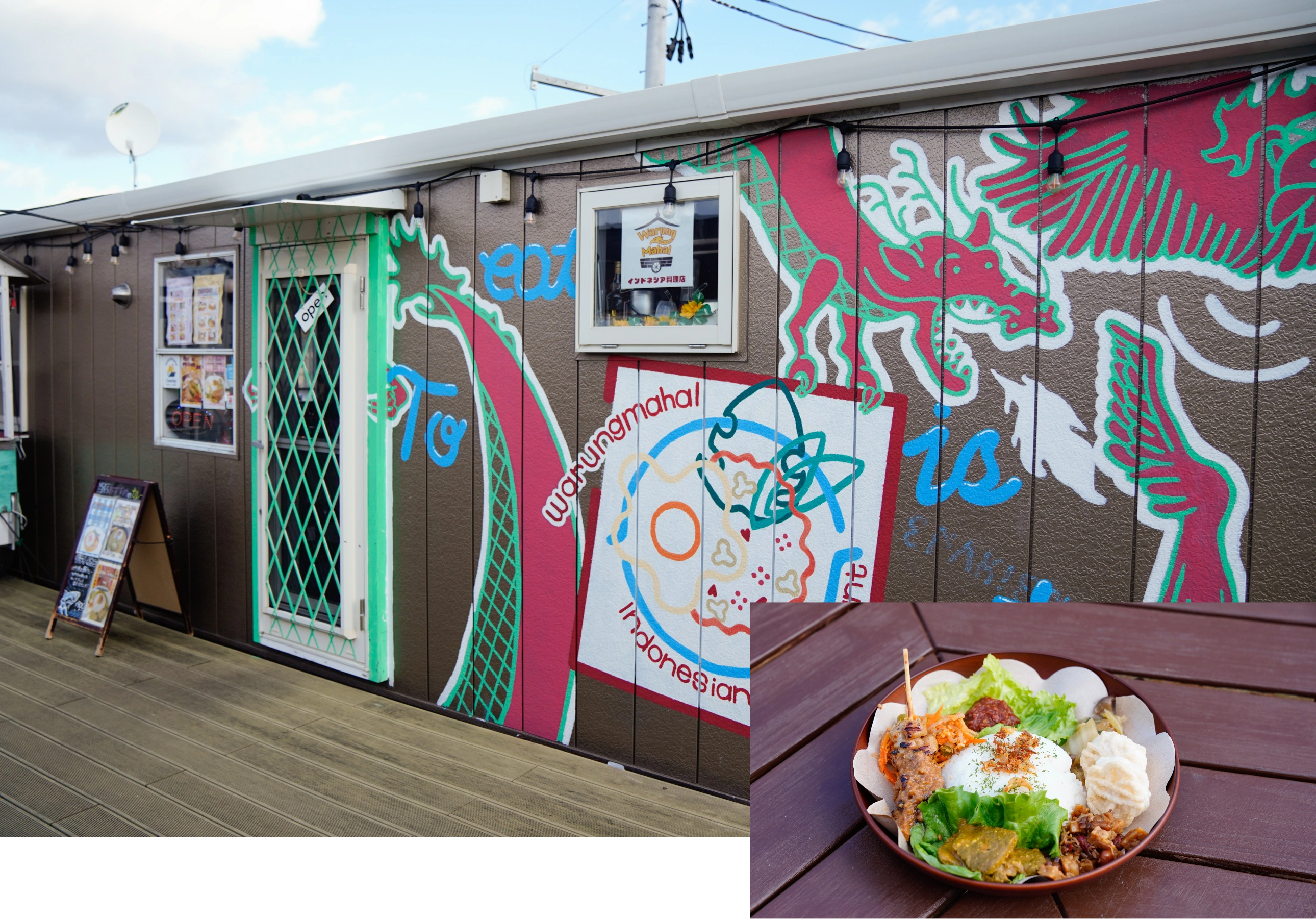 2019年、気仙沼魚市場前に登場した、気仙沼の新名所「みしおね横丁」。トレーラーハウスを改装してつくられたユニークなお店が立ち並びます。気仙沼とインドネシアの交流の歴史は長く、 現在は200名を超えるインドネシア人が市内に住んでいるのだそう。イスラム教の方が多い彼らのための祈りの場「モスク」もありました。