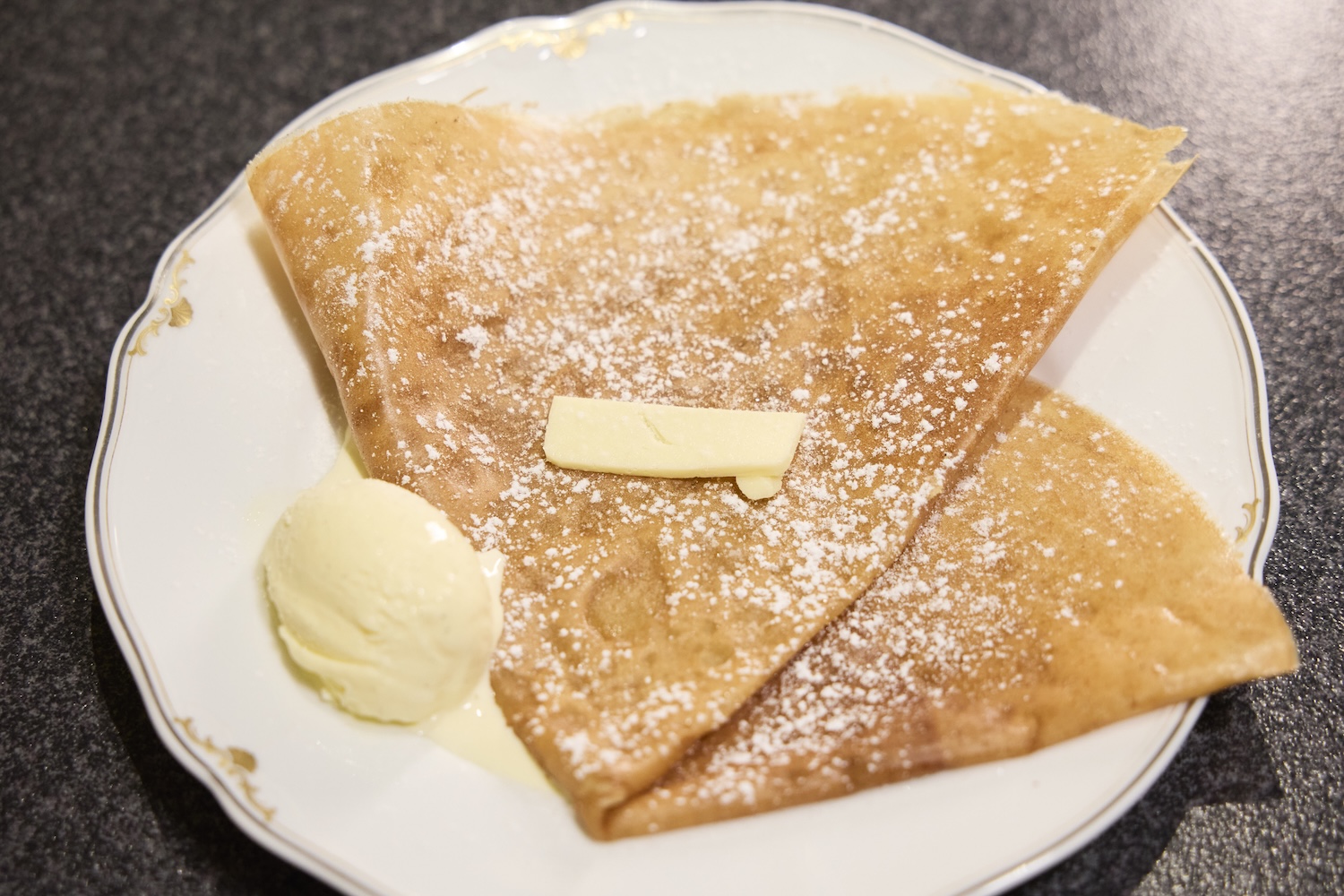 山西さんおすすめの「バター&シュクレ」をいただきました。「こういった見た目のクレープは初めてかもしれません。クレープの生地を楽しむ感じ?サクサクともちもち、すごく美味しくて幸せです!何枚でも食べられそうです!」とお気に入りの様子で「味光路」の夜をシメくくりました。