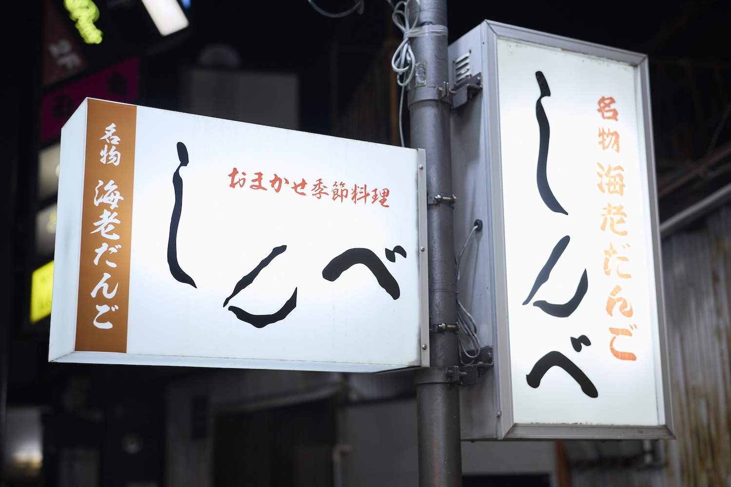 「色々なお店があって、なんだかワクワクしますね!」と矢吹さん。「これだけお店があるので、どこを紹介したら良いか迷いましたが、ここは特におすすめです。今日はとても良い天気でしたので、大将がきっと海で美味しいお魚を釣ってきてくれていると思います」と山西さんに連れてきていただいたのが海鮮居酒屋「しんべ」です。