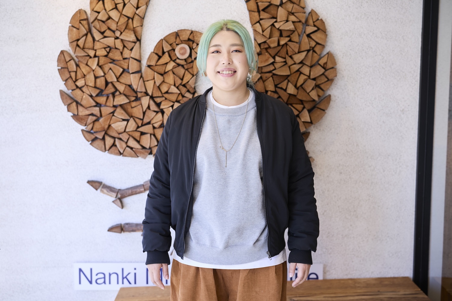弁慶像をながめていると「奈子さん、こんにちは!」と声をかけてくれたのが、2人目のロコレコさん、田中 裕子(たなか ひろこ)さんです。「素敵な髪色ですね!」と矢吹さん。「遠くから見てもらっても気づいてもらえるようにしています」と笑う田中さん。田中さんは文具店「寒川紙店(そうがわかみてん)」のスタッフで、空き家を使った地域貢献活動でも活躍しています。また田中さんは田辺市の特産品、梅農家の娘さんでもあります。