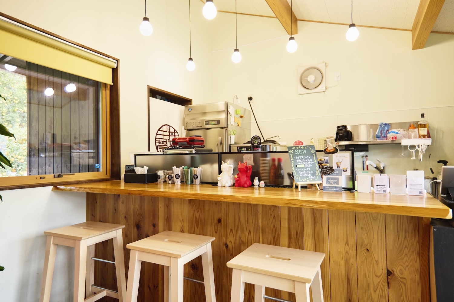 店内に入ると笑顔で迎えてくれたのは、主井 優好(ぬしい まさよし)さん。「すずさんに果汁たっぷりみかんジュースをお願いします」と弥子さんがオーダーしてくれました。「すごく楽しみにしてきました!」と目を輝かせる山之内さん。