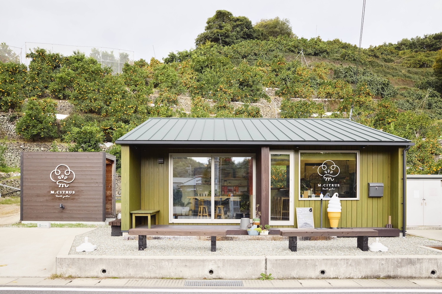 連れてきてもらったのは県内外からファンが訪れる「エムシトラス フルーツパーラー」。中井さん夫婦が普段から仲良くしているという、ご近所の主井農園の直営店です。