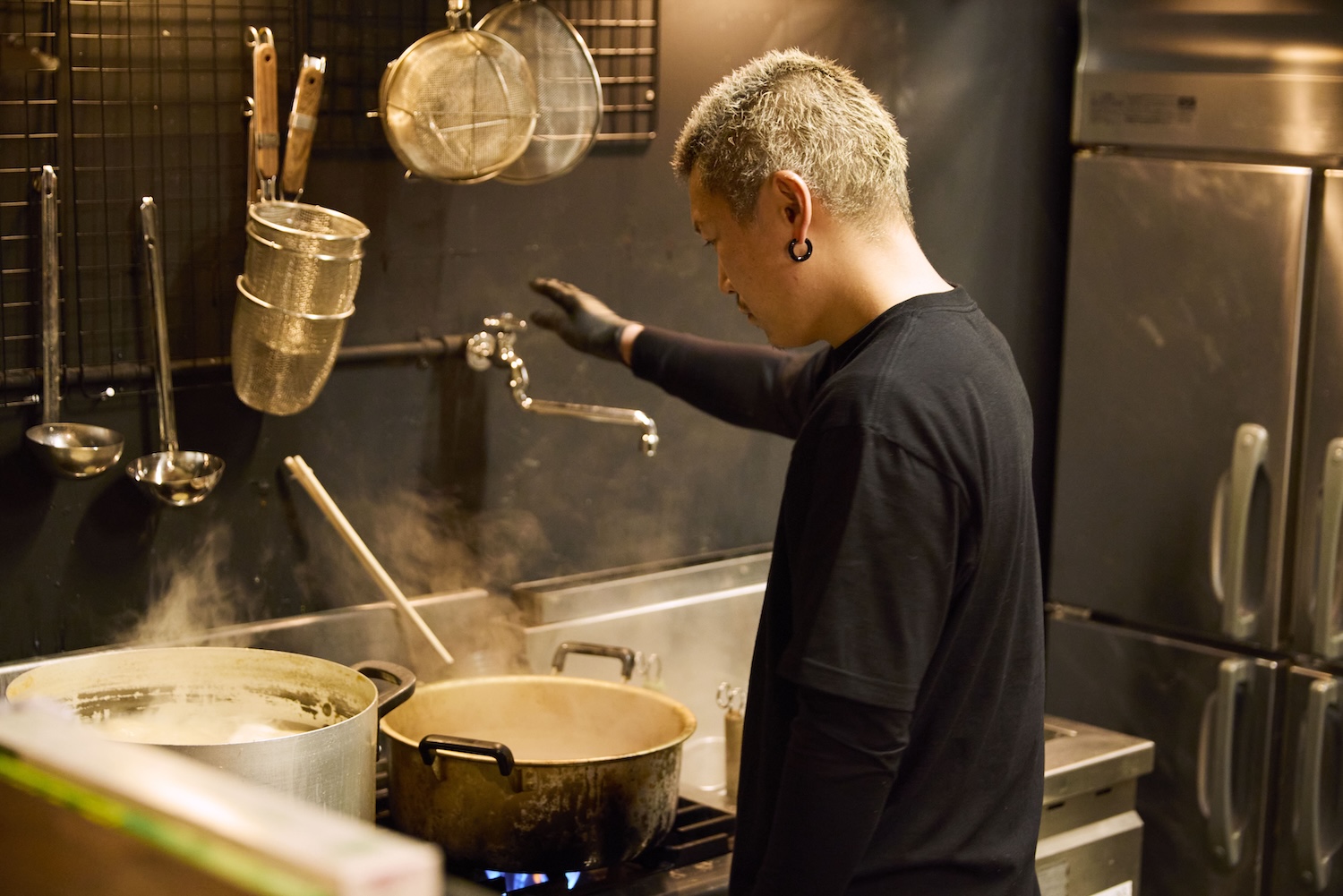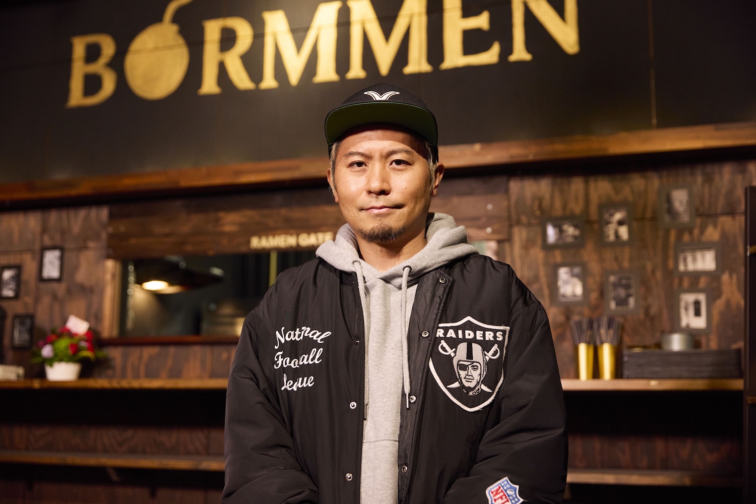 店内へ入ると「BORM MENへようこそ!」と迎えてくれたのは店主の前川 勝弥さん(まえかわ かつや)さん。「すごく素敵なお店!ラーメン屋さんというよりもバーみたいなオシャレな雰囲気がありますね。店名の由来も気になります」と山之内さん。「かっこいいラーメン屋が作りたくて昨日オープンさせました!店名はBOMB (爆弾)、BORN (生まれる)、 MEN(麺)で爆発的な旨さを生み出す麺。という思いを込めました」と前川さん。