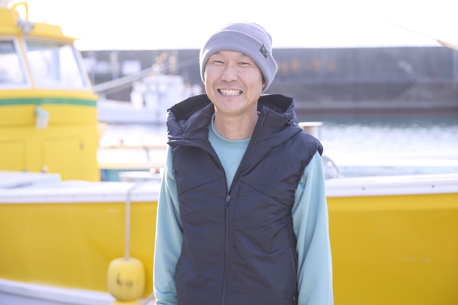漁港を散策していた山之内さんに「すずさん!こんにちは!」と船の上から声をかけてくれたのが、タチウオをメインに漁をしているロコレコさん、漁師の権 勝大(ごん かつひろ)さんです。