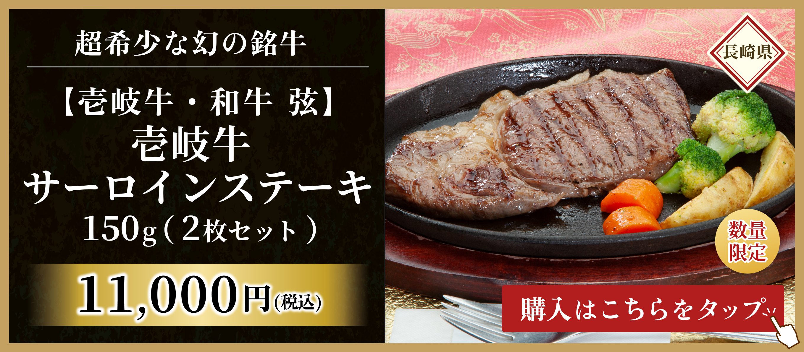 2026年1月24日放送で紹介年間900頭のみ出荷される幻の銘牛。壱岐牛のサーロインステーキ用(150g・2枚入)
