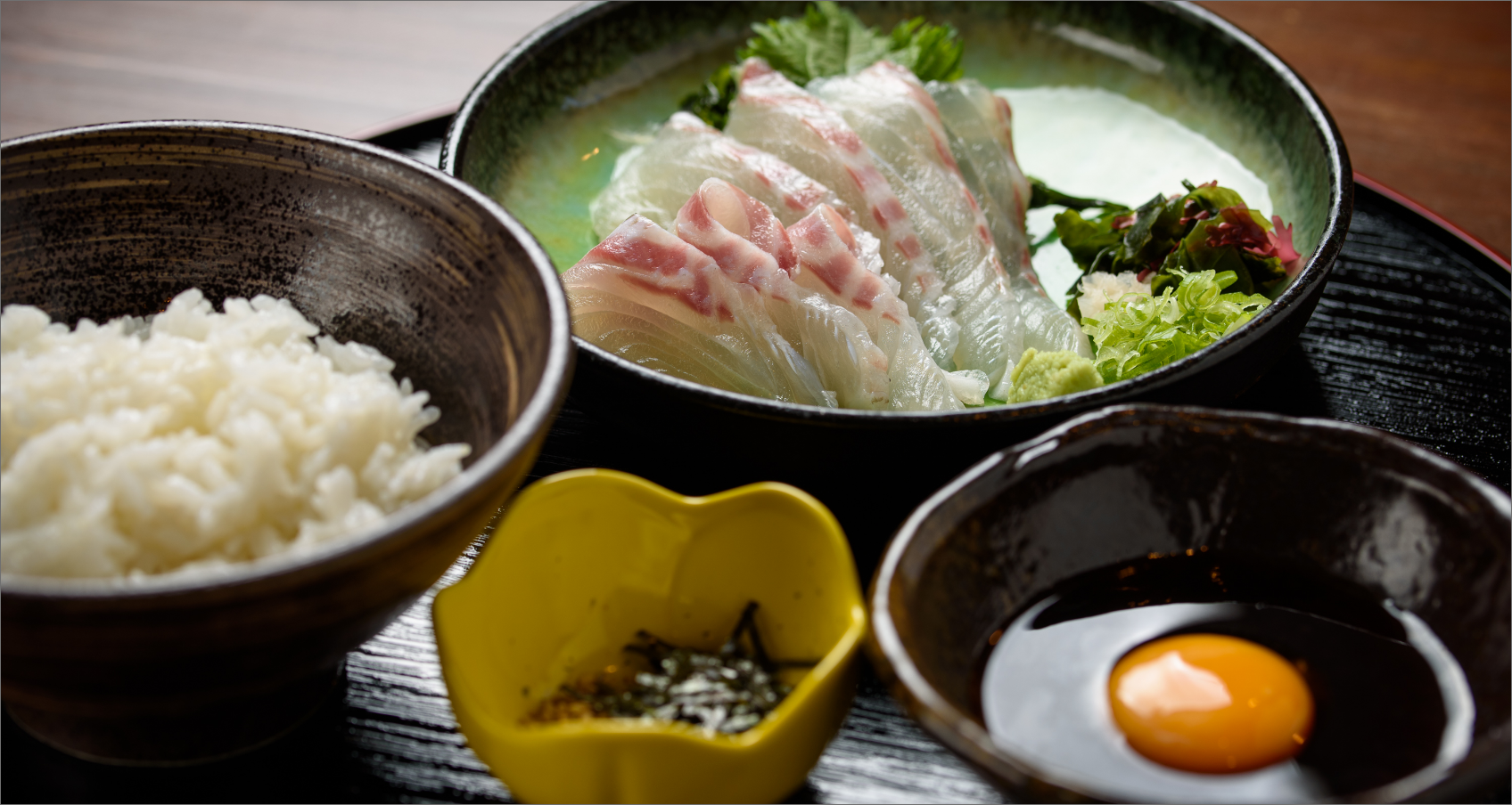 ② 特製ダレ付き!刺身と卵で豪快に食べる、が魅力の「宇和島鯛めし」