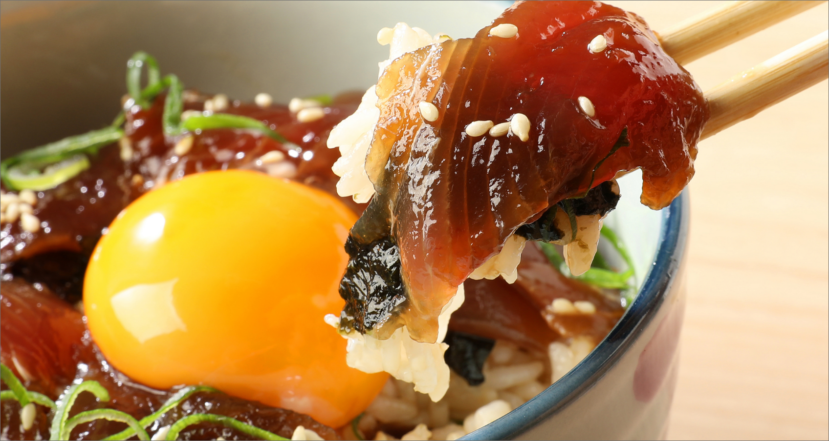 ユッケ丼は、毎日のようにかつおを食べる漁師たちが編み出した味。香ばしいごま油と特製のタレに付けたユッケ丼のかつおは、とろけるような舌触り。袋のまま流水で5分間解凍するだけで食べられるので、夜食やランチにもピッタリ。おつまみにするとお酒が進んでしまいそう。