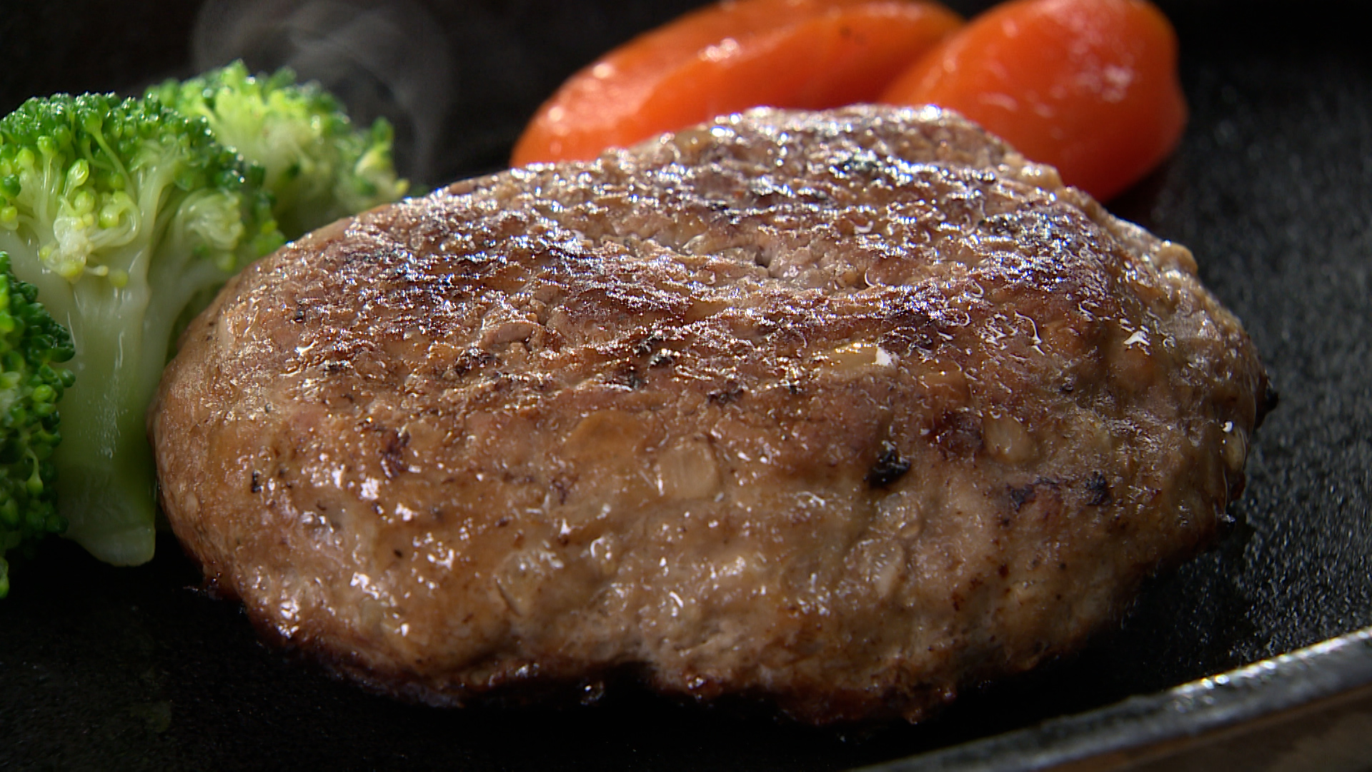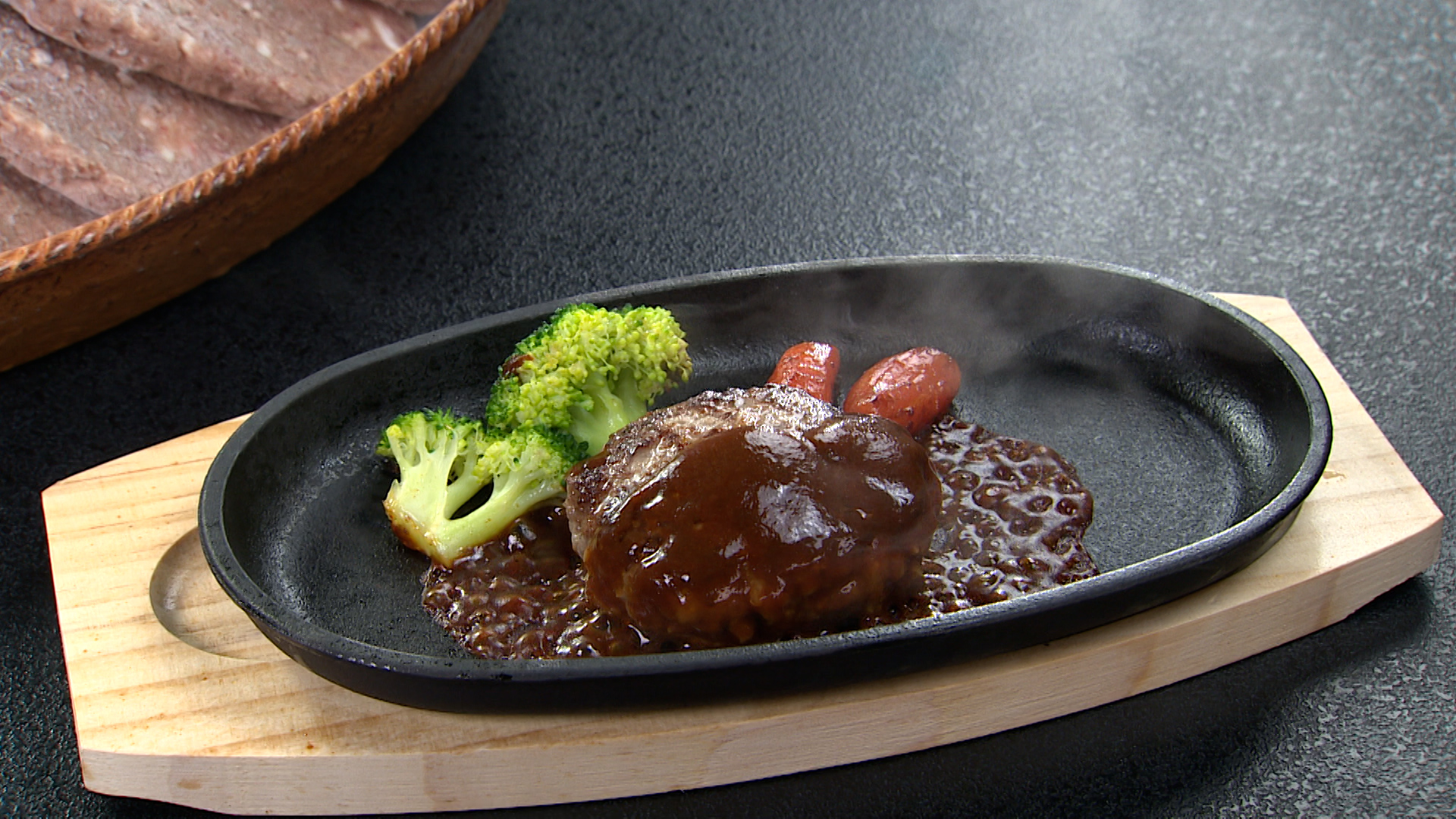 北海道の契約牧場の牛肉を100%使用。札幌の有名ホテル元料理長が監修したハンバーグ!