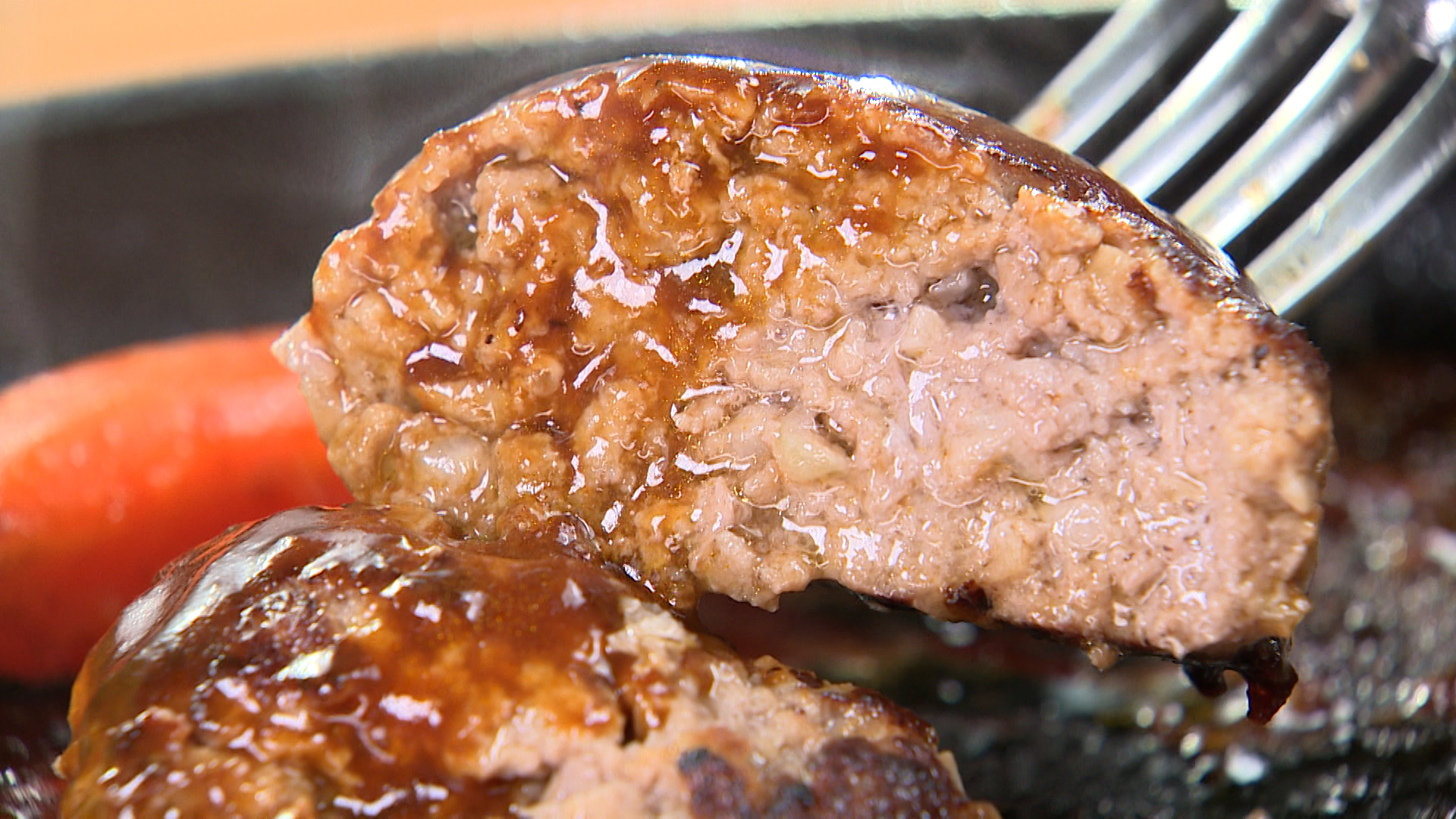 ハンバーグの種にはソテーした北海道産玉ねぎを入れて味わいに奥深さを持たせているほか、牛脂や調味料をバランスよく配分することで肉汁がじゅわ~っとあふれ出すジューシーなハンバーグが完成しました。