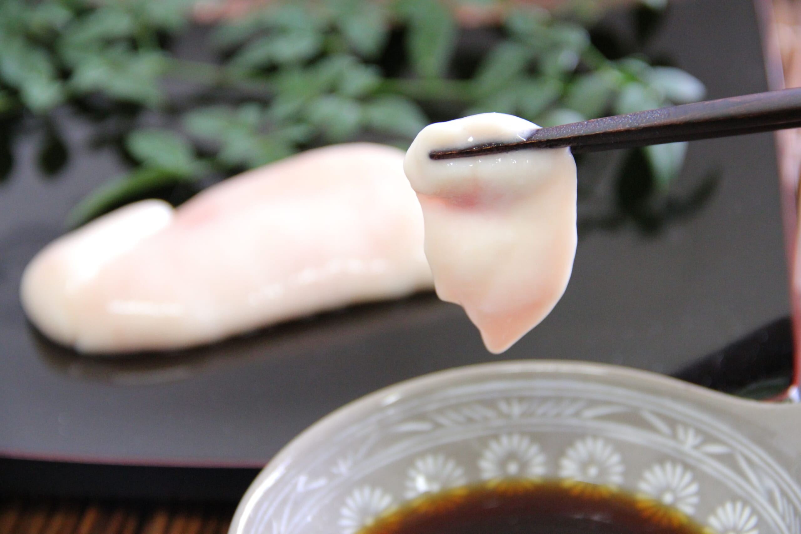 そしてもうひとつ、ふぐならではの味わいといえば、白子。3年かけて育てているため大きく、濃厚でクリーミーな味わい。ビタミン豊富な上に、高タンパクで低カロリーです。トースターなどで焼いても、フライにしても美味。口の中でとろける食感と濃厚な味わいをご堪能あれ。