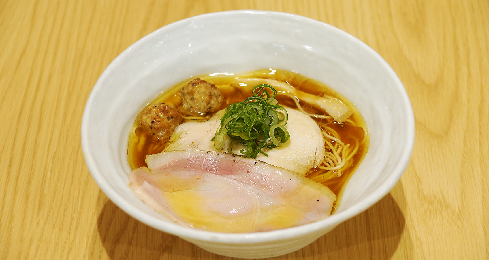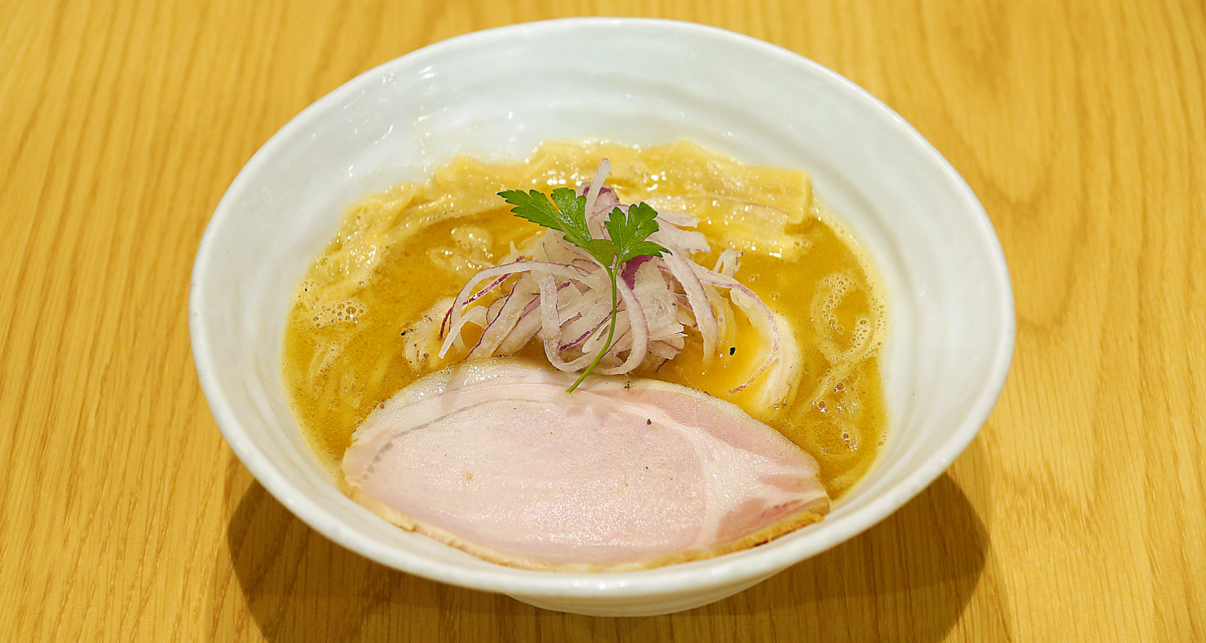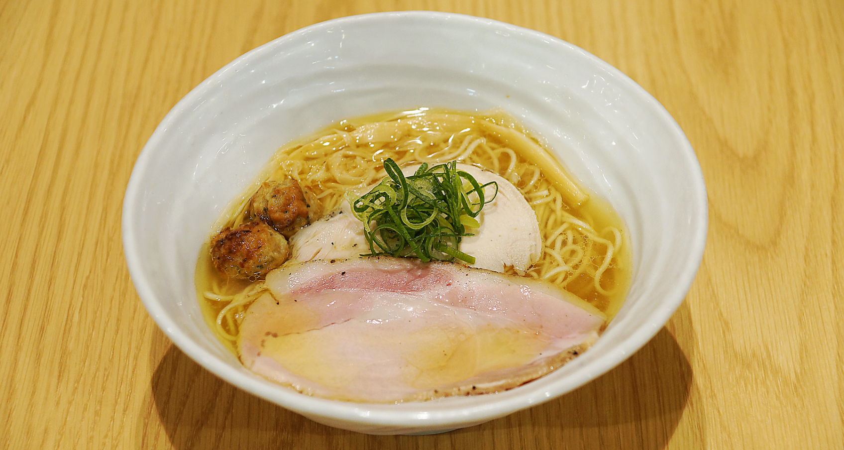 静岡のあら塩を用いて独自にブレンドしたタレに、透明感と深みのある鶏清湯スープ。大量のあさりから抽出した貝出汁をブレンド。それぞれが持つ素材の旨味が引き立つ中に、まとまりと深さも感じる塩そばです。