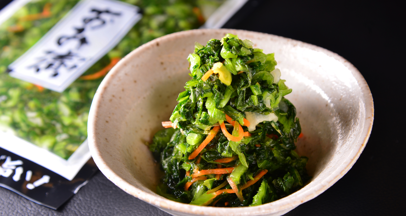 ③ ごはんのお供やお酒のおつまみにもぴったりの2種の漬物と「牛タン辛み」