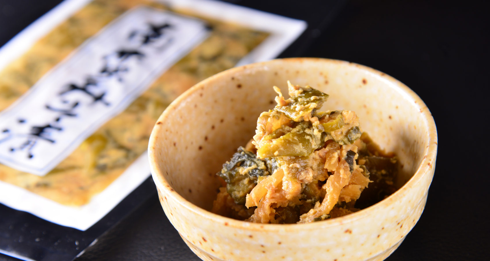 「おみ漬」と「南蛮みそ漬」も『司』の牛タン定食に欠かせないものです。「おみ漬」は青菜(せいさい)や大根などの野菜と旨みのあるするめや昆布を合わせたあっさりした漬物です。「南蛮みそ漬」は、青唐辛子を野菜や葉唐辛子、しその実などと一緒に味噌に漬け込んだもの。ピリリと辛く、ご飯のお供やお酒のあて、牛タンと一緒に食べてもおいしいと、ファンの多い一品です。
