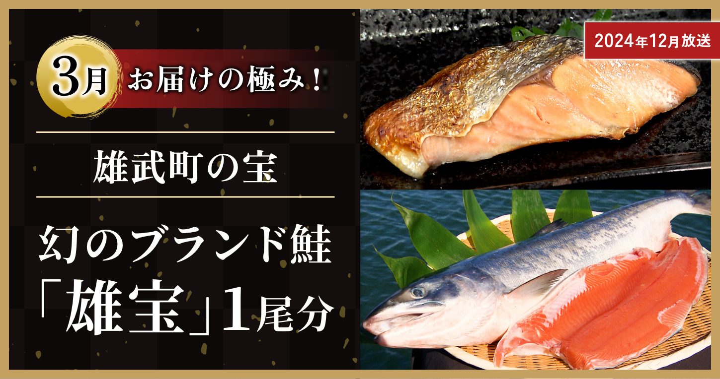 北海道有数の鮭の産地、雄武前浜沖の指定された秋鮭定置網で漁獲される秋鮭のうち、銀色に輝く魚体でかつ脂のりが特別に良い3kg以上のものだけが、雄武の宝=「雄宝」と名づけられます。