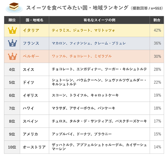それでは「現地でスイーツを食べてみたい海外の国・地域」の調査結果を発表します。(※ 複数回答あり)