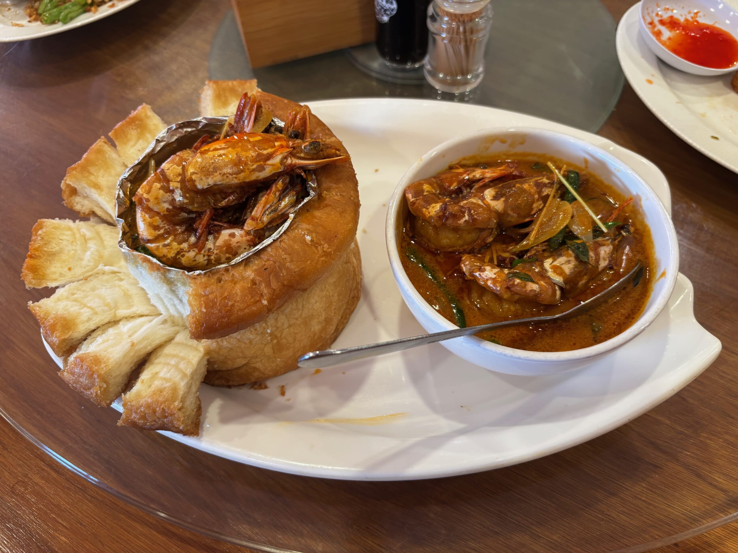 旅サラダガイドがおすすめするのは、意外にも「カレーパン(Curry Prawns in The Loaf)」。しかしこちらのお店のカレーパンは、ひと味違います。焼き立てのパンとスパイスの香りを漂わせながら登場するのは、器に見立てたデニッシュパンにカレーがたっぷり盛り付けられ、上には大ぶりの海老がトッピングされた一品。私たちが想像するカレーパンとは一線を画すビジュアルです。