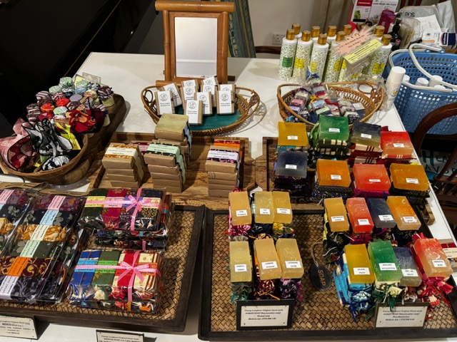 工房内にあるショップではフェイシャルソープやボディーローションなど、ナマコ水を使ったさまざまな商品が販売されています。マレーシアの伝統工芸品・バティックに包まれたフェイシャルソープは特に人気なので、チェックしてみて!