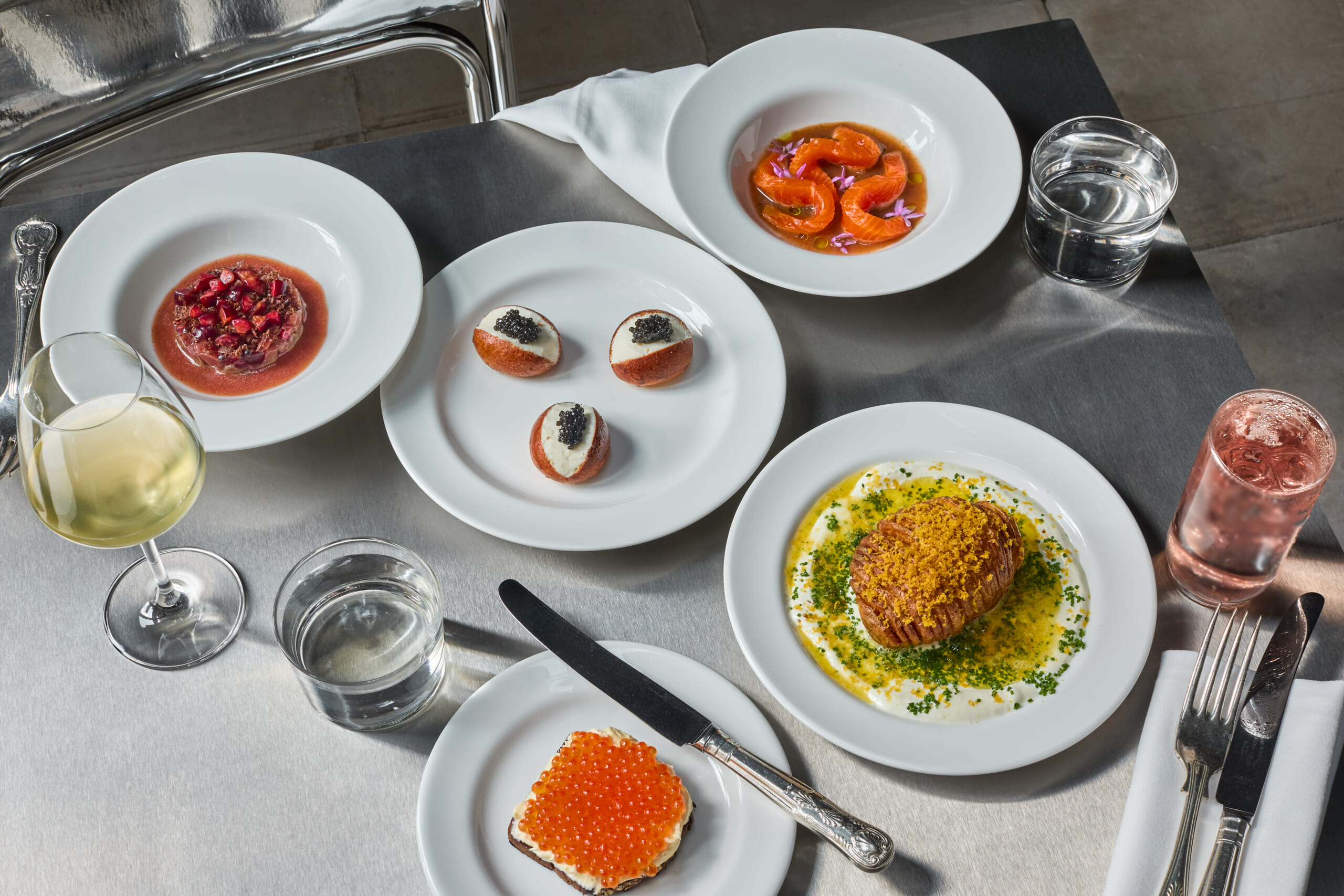 オイスターはエシャロットとタバスコでいただく伝統的なスタイル以外に、スモークしたトマト果汁とホースラディッシュのクリームを添えた個性が光る一品も。そのほかカニのビスクパスタやステーキなど、素材の味を最大限に生かした多彩なメニューが揃います。