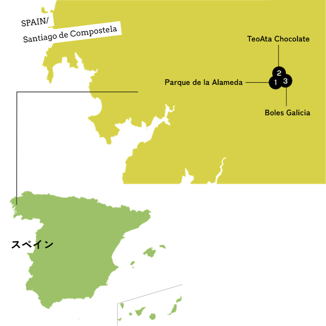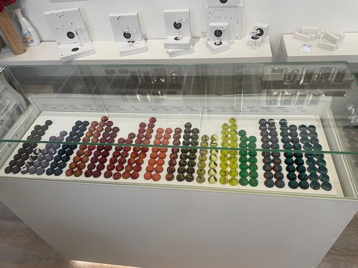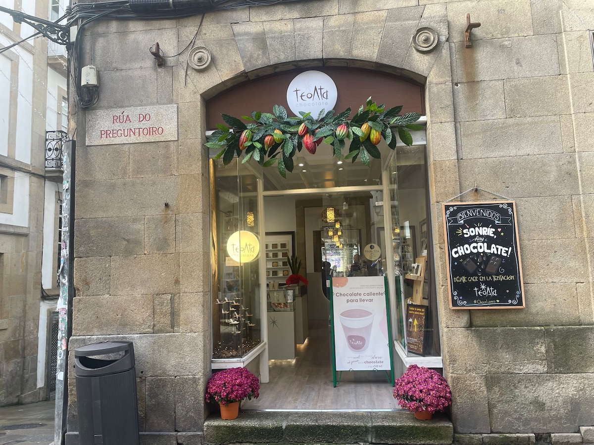 サンティアゴ・デ・コンポステーラ大聖堂の目の前という好立地に店を構える『TeoAta Chocolate (テオアタ・チョコラテ)』は、見ているだけで幸せな気持ちになれる人気のチョコレート屋さん。価格帯は2.5ユーロからとお手頃です。