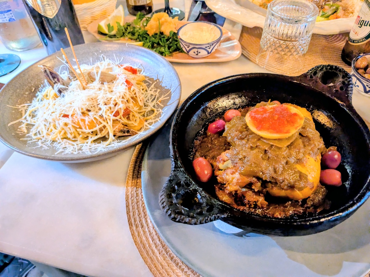 モロッコ料理はもちろん、パスタやピザ、地中海風の魚・肉料理などメニューが豊富。地元で獲れる魚やリフ山脈のハーブを使った料理など、素材へのこだわりも感じられ、どれを頼んでも満足度の高い一皿に出会えます。