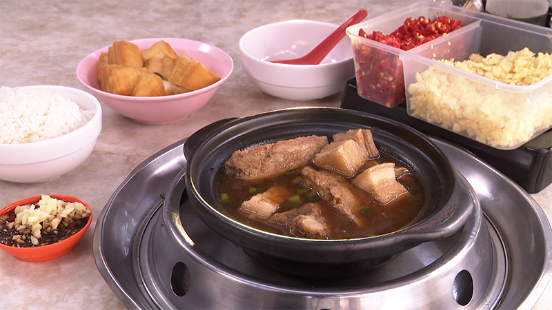豚のスペアリブを漢方薬やニンニク、香辛料でじっくり煮込んだスープ料理。中国系移民の労働者のスタミナ食として生まれた。ローカルではご飯や揚げパンと一緒に食べるのが一般的。