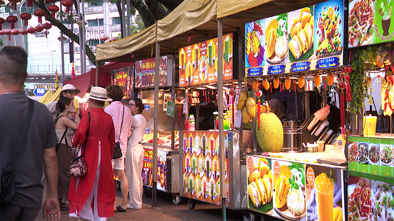街一番の賑わいを見せる屋台通り。サテ、チキンライス、チャークイティオ、肉骨茶、海鮮炒めなど解放感抜群の屋外で安くて美味しいマレーシアのローカルフードが楽しめる。