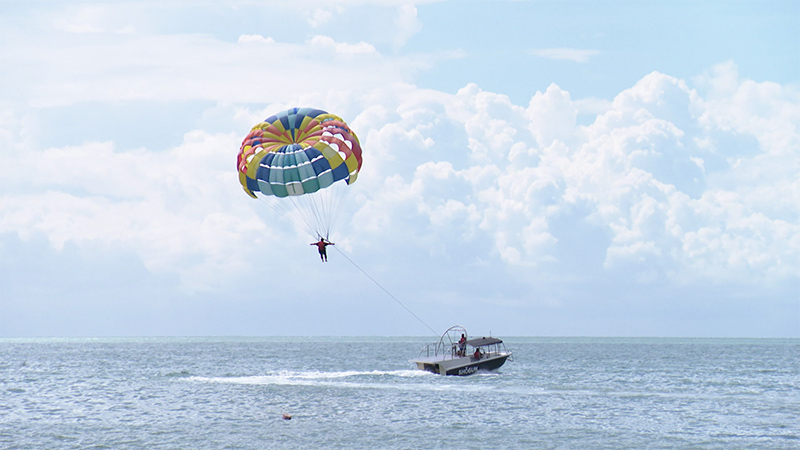 マリンスポーツが盛んで、パラセーリングではペナン島の海を空中散歩できる。