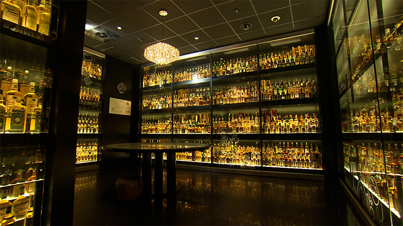 一番の見所は、3,384本のウイスキーがずらりと展示されたコレクションルーム。展示されているウイスキーは、1人の愛好家が35年かけて集めたもの。ひとつとして同じものはなく、全て未開封。
