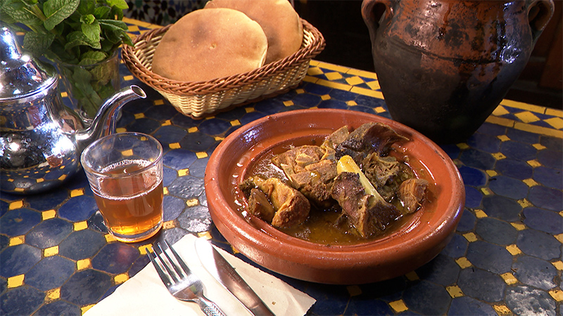 マラケシュ伝統の郷土料理であるタンジーヤの人気店。壺にお肉と様々なスパイス・レモン・オリーブを入れ、じっくりと火をいれたお料理。ローカルの人はホブスと呼ばれる平たいパンと一緒に食べるのが定番。