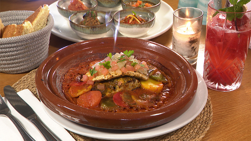 港町ならではの、その日の朝に獲れた新鮮な魚で作られるお魚のタジン料理が名物。