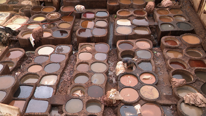 フェズ旧市街にある、何世紀も続く皮なめし工房。